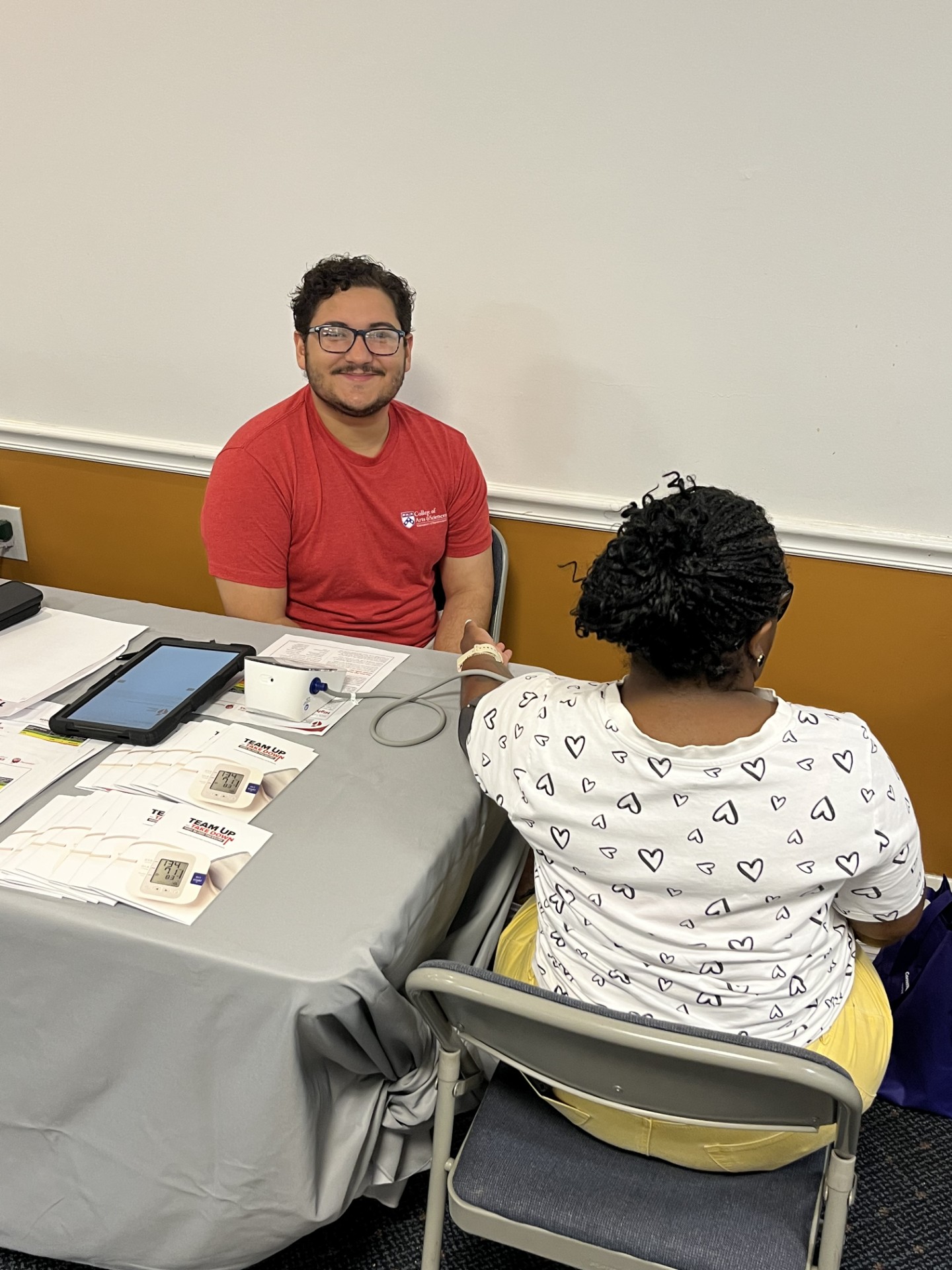 During the pantry’s regular distribution hours, residents were greeted not only by volunteers handing out food, but also by a team of health advocates from two powerful initiatives: Team Up to Take Down High Blood Pressure and the Together for West Philadelphia Health Access Links (T4WP HEALS) program. Their mission? To bring essential health services directly to the community, with a special focus on high blood pressure awareness and improving access to care.