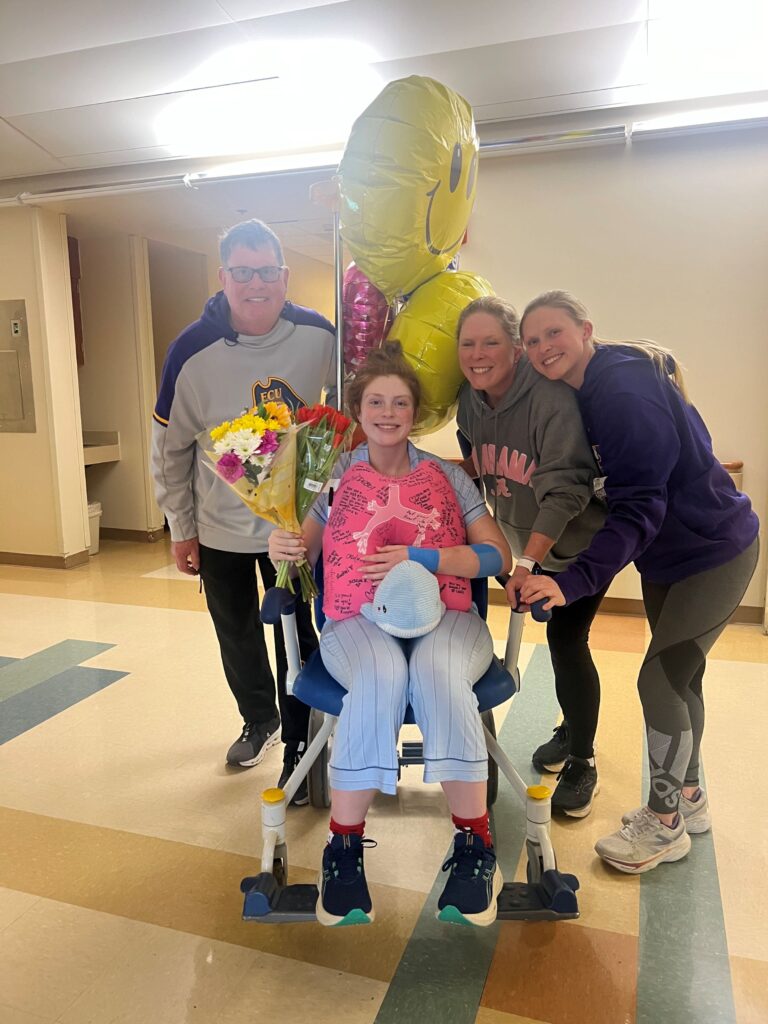 Hailey was transported to the East Carolina Heart Institute at ECU Health Medical Center, where testing eventually revealed that Hailey was living with a rare form of cardiomyopathy. With this diagnosis, Hailey and her family learned that her lifestyle would change completely. A team of six medical professionals delivered the news: running and any form of high-intensity exercise were out. Hailey would need a dual lead pacemaker and implantable cardioverter-defibrillator, and eventually she might need a heart transplant. At just 21, Hailey’s lifelong love of athletics was taken away and her future felt uncertain.