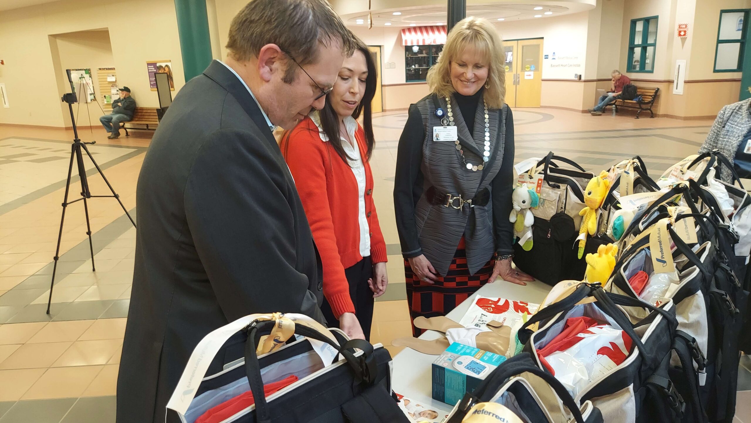 On Wednesday, March 11, at Bassett Healthcare Network’s FoxCare Center in Oneonta, Preferred Mutual Insurance Company joined the Go Red movement in this commitment and provided 25 New Mom Kits to Bassett Healthcare Network. Medical professionals at Bassett’s Women’s Health clinics in Oneonta and Cooperstown will determine which patients will receive the kits.